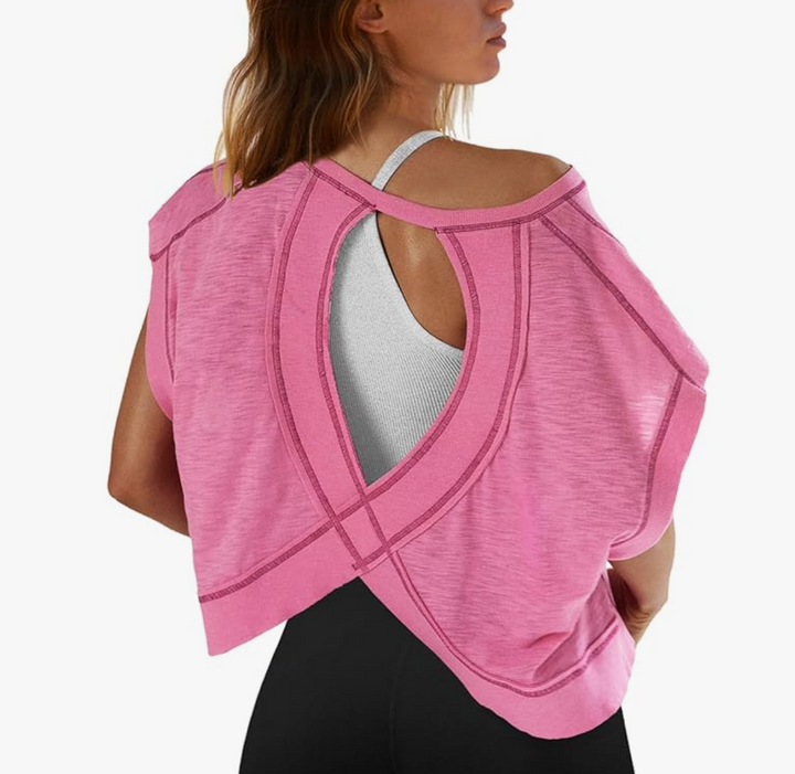 Elevate your workout wardrobe with this open back yoga top, designed for freedom of movement and modern style. The backless design keeps you cool during intense sessions while the short sleeves provide breathable comfort. Perfect for yoga, pilates, or gym workouts, this athletic shirt combines functionality with a flattering silhouette. The lightweight fabric moves with your body, allowing unrestricted motion for any fitness routine. Whether you're flowing through poses or crushing cardio, this versatile piece delivers both performance and confidence.